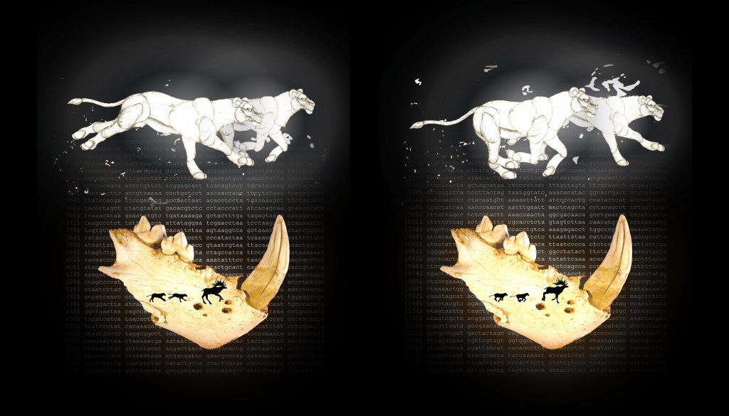 Yn ei gyfrol arloesol ‘British Pleistocene Mammalia’, ymhlith y casgliad mwyaf ysblennydd o lithograffau yn portreadu esgyrn megaffawna coll yr Oes Iâ – gan gynnwys Panthera spelaea – ysgrifennodd Syr William Boyd Dawkins ‘Man cannot live at peace with the great carnivores. In direct proportion to his increase in number they decrease, being driven from the field in the struggle for life’.